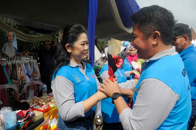Gubernur Sumsel Herman Deru menyerahkan setangkai bunga kepada istrinya sebagai tanda ucapan selamat Hari Ibu Palembang, Laparta News - Gebyar Hari Ibu yang diselenggarakan TP PKK Sumsel di Griy…